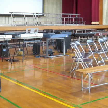 モニタースピーカー2本付きで、小規模なライブ・コンサートに対応します。町内会の夏祭り・盆踊り、アコースティックライブ、小学校・中学校の学校祭(文化祭)にもご利用いただけます。